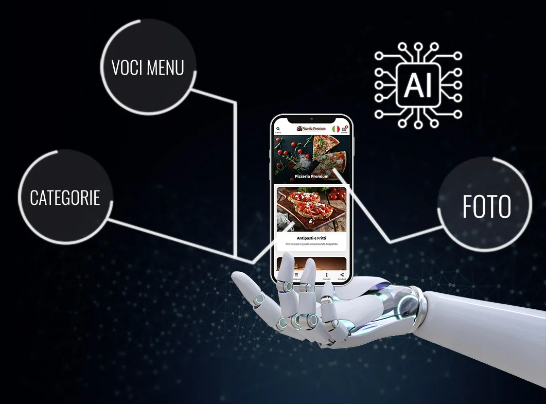 Il Menù digitale è un menù che i ristoranti rendono disponibile online consultabile attraverso la scansione di un QR Code o NFC che i clienti possono trovare sul tavolo. Infinite possibilità di personalizzazione del menù, del QR e della grafica per gli stand segnaposto.